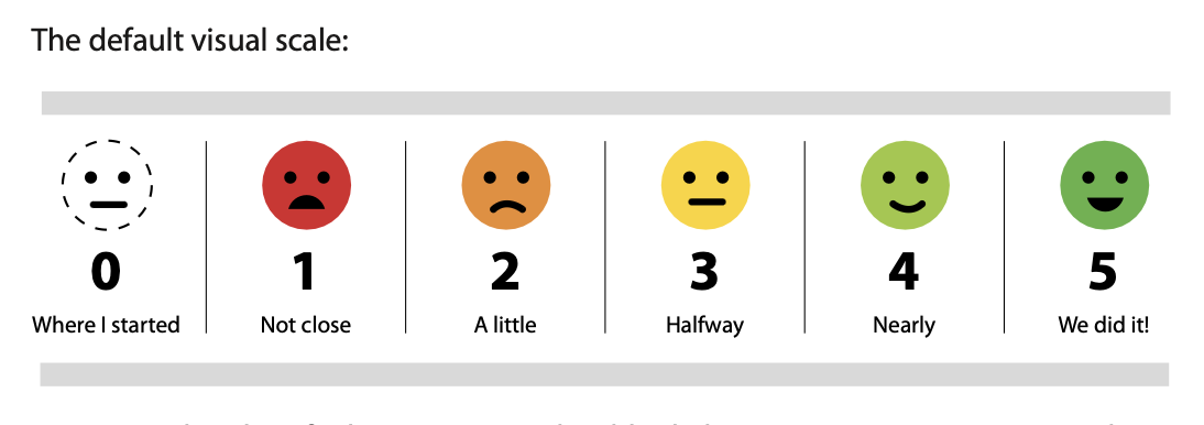 Once a goal is identified, practitioners should ask the service user/carer to rate where they currently are on the scale in relation to meeting their goal. Of note, not everyone will be at ‘Zero’ when they start the work in service. The goal can then be revisited and re-rated by the service user/carer at relevant points throughout the intervention, and always again at the end.